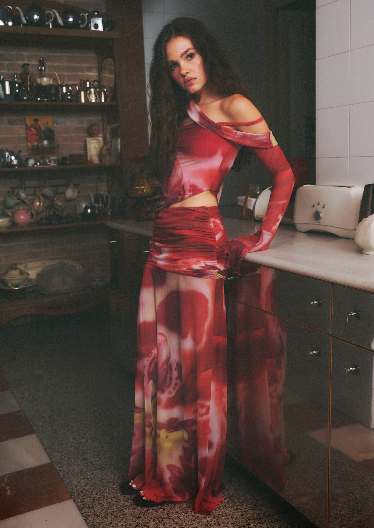 The Susurro Set is crafted in lightweight mesh and features a softly draped bust paired with a long, flowy skirt that falls all the way to the feet. Designed to move with you, the skirt adds fluidity and quiet drama to every step. A striking piece that feels both sculptural and effortless.