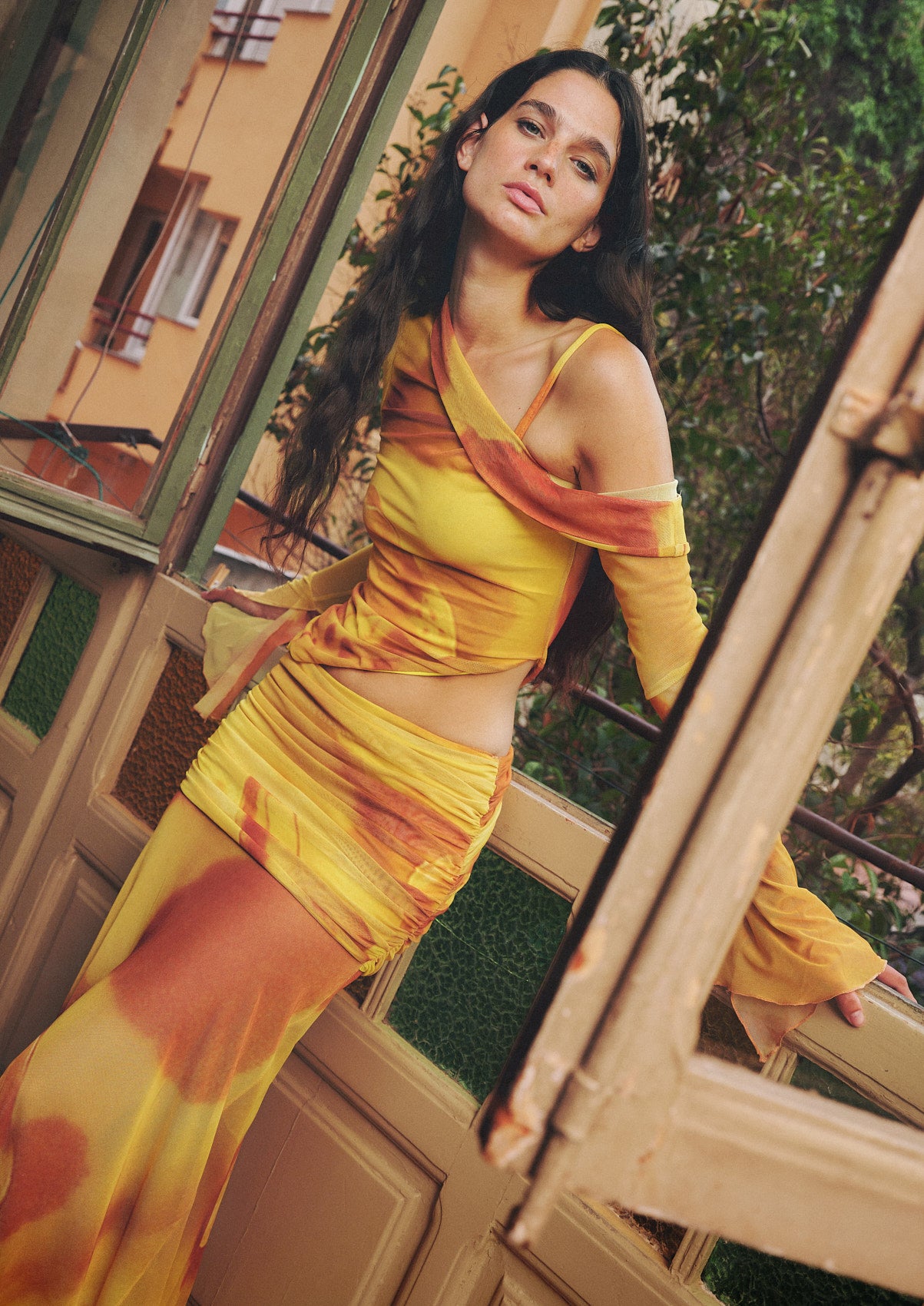 The Susurro Set is crafted in lightweight mesh and features a softly draped bust paired with a long, flowy skirt that falls all the way to the feet. Designed to move with you, the skirt adds fluidity and quiet drama to every step. A striking piece that feels both sculptural and effortless.