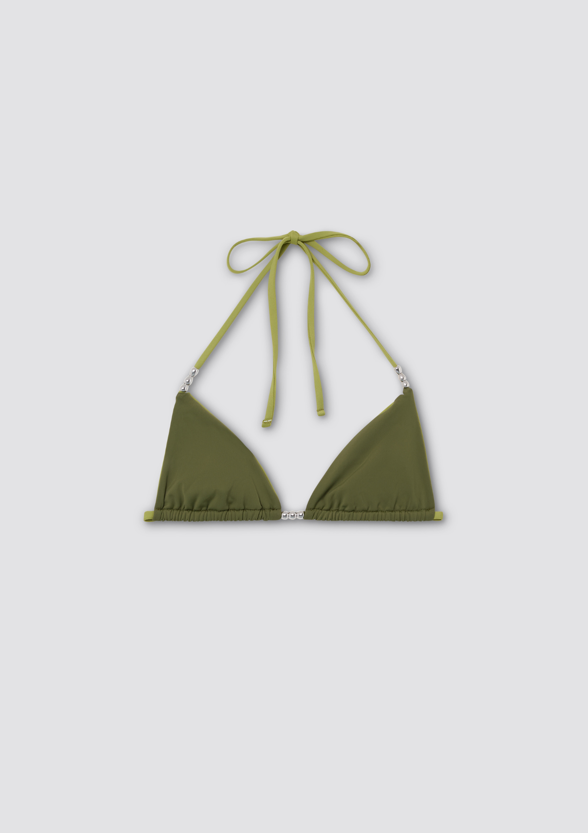 Olive bikini bottom with adjustable strap. The fitting is highly adaptable.