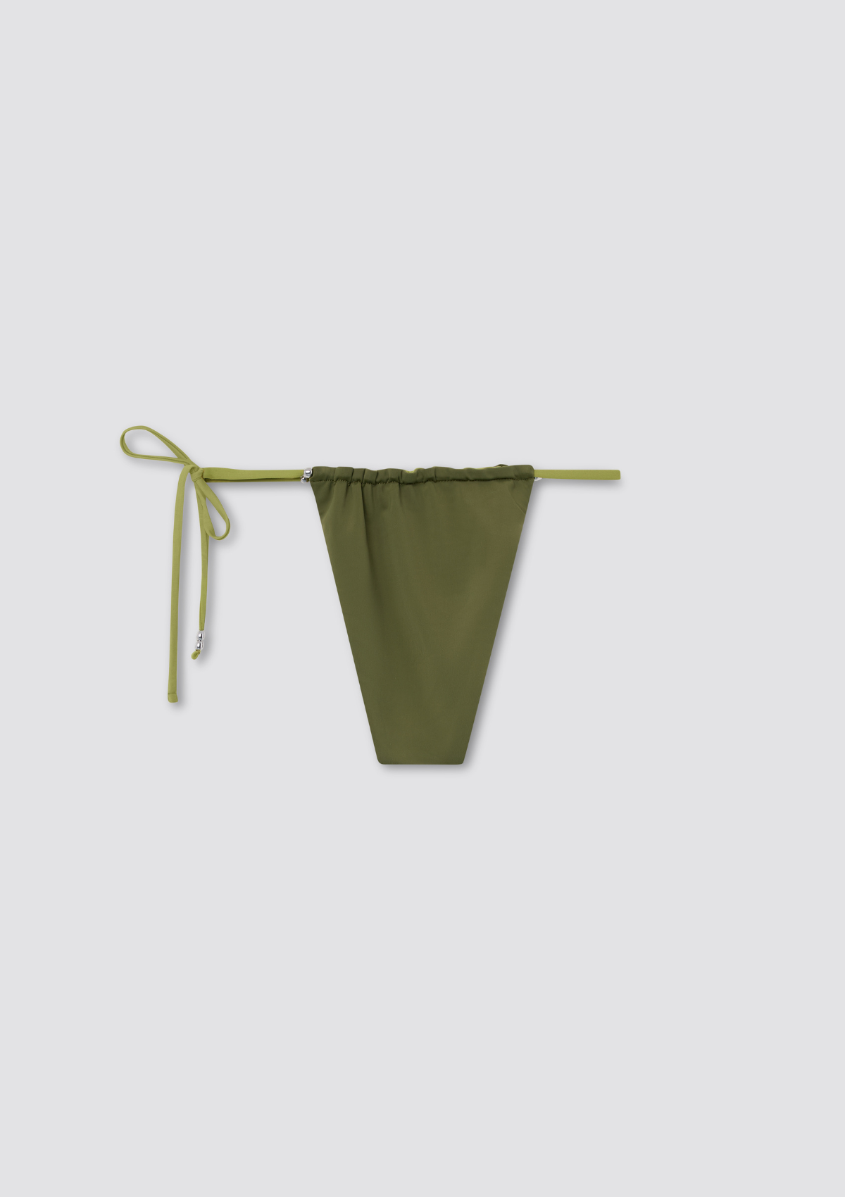 Olive bikini top with adjustable straps. The fitting is highly adaptable.