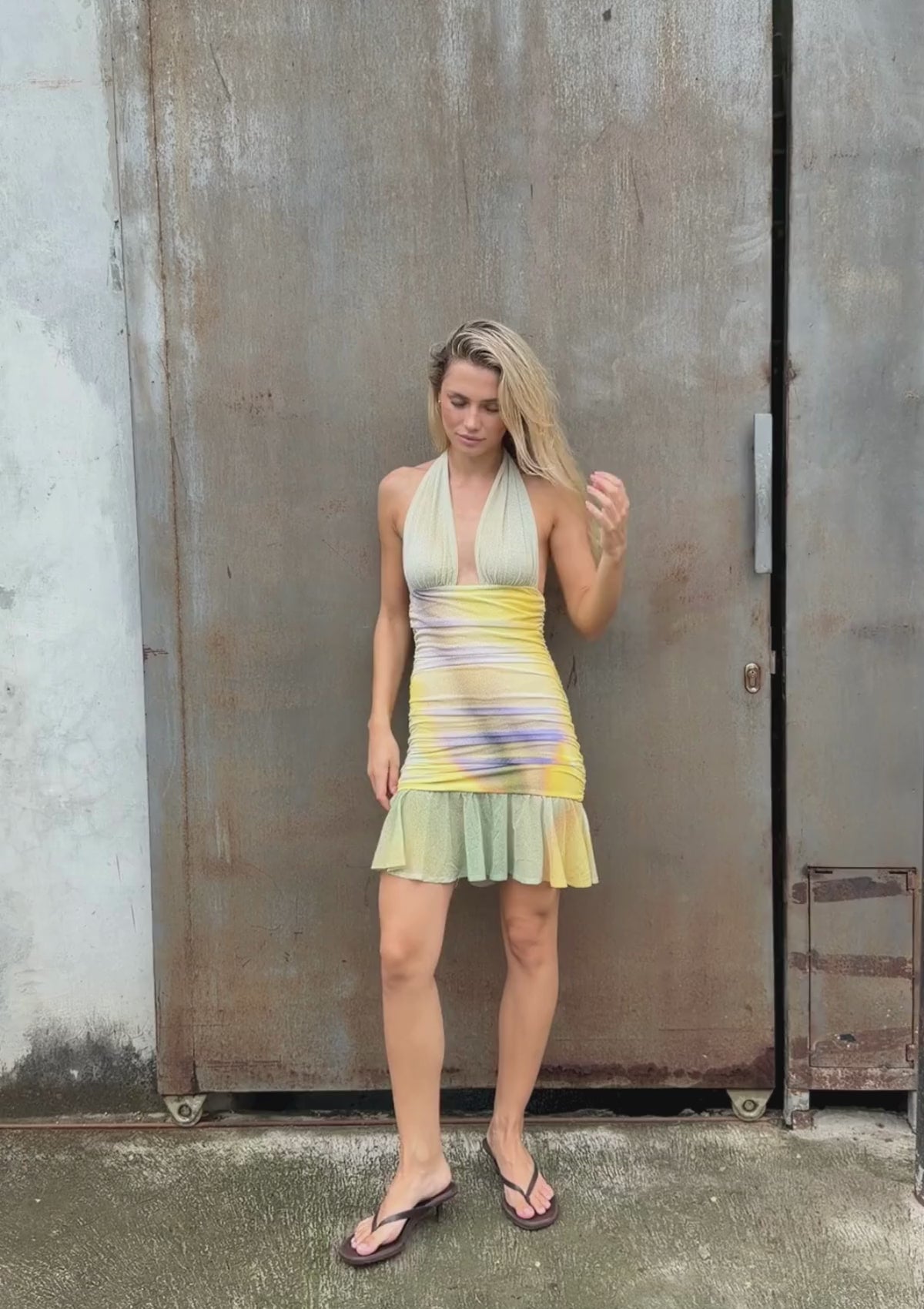A built-in lining offers comfort and coverage, and the flounced mini hem adds movement and fluidity with every step. Designed to feel effortless yet refined, it’s a piece that transitions seamlessly from sunlit days to warm summer nights.