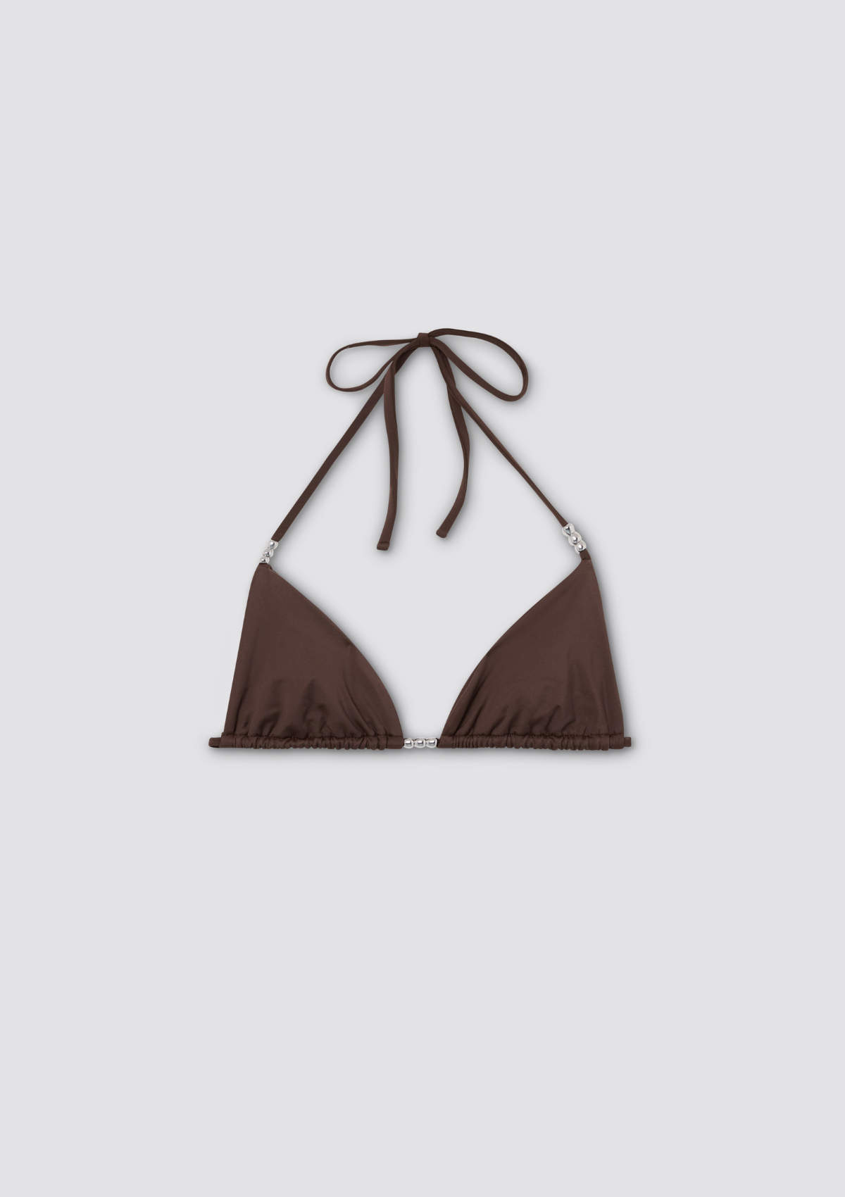 Brown bikini bottom with adjustable strap. The fitting is highly adaptable.