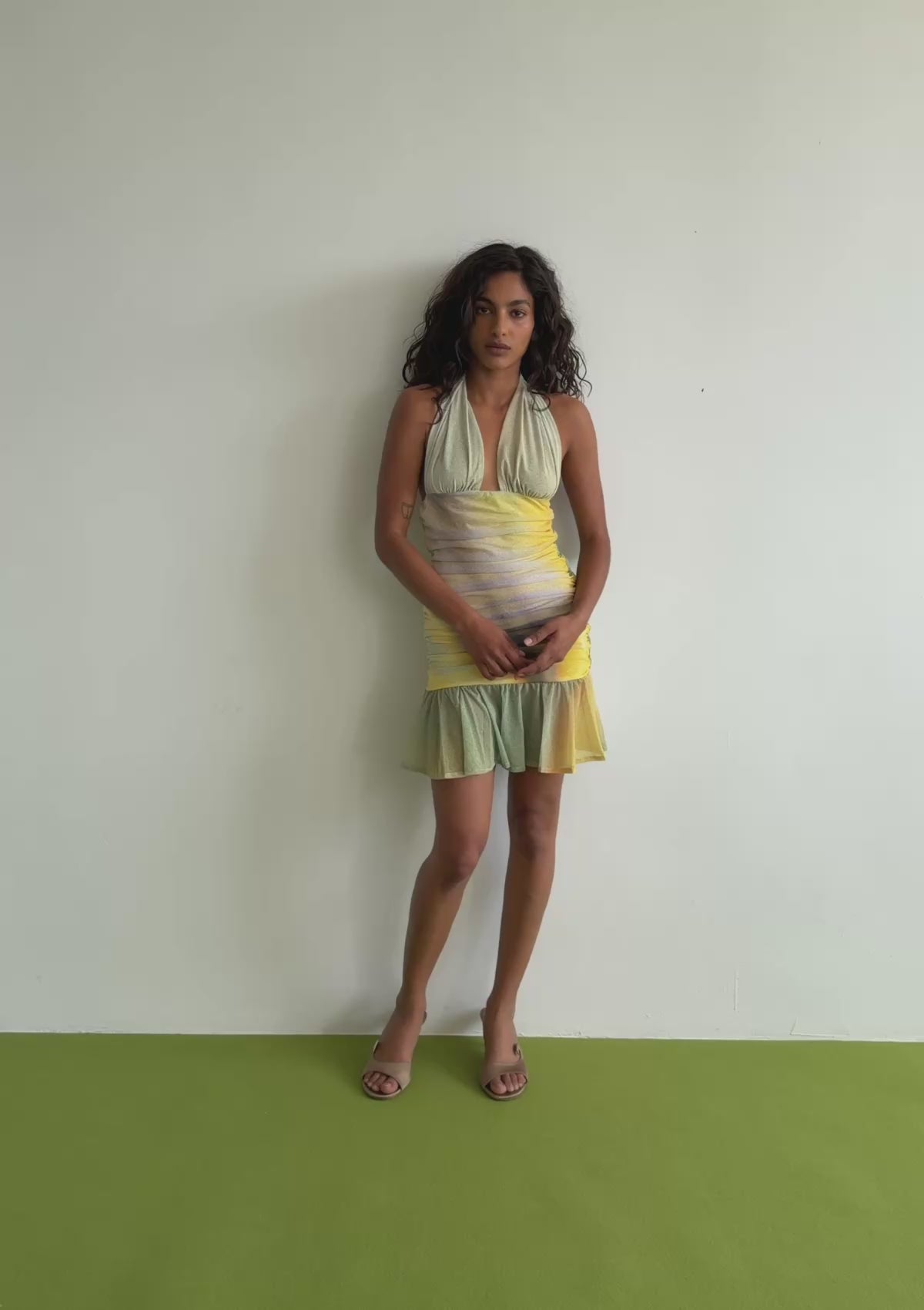 A built-in lining offers comfort and coverage, and the flounced mini hem adds movement and fluidity with every step. Designed to feel effortless yet refined, it’s a piece that transitions seamlessly from sunlit days to warm summer nights.